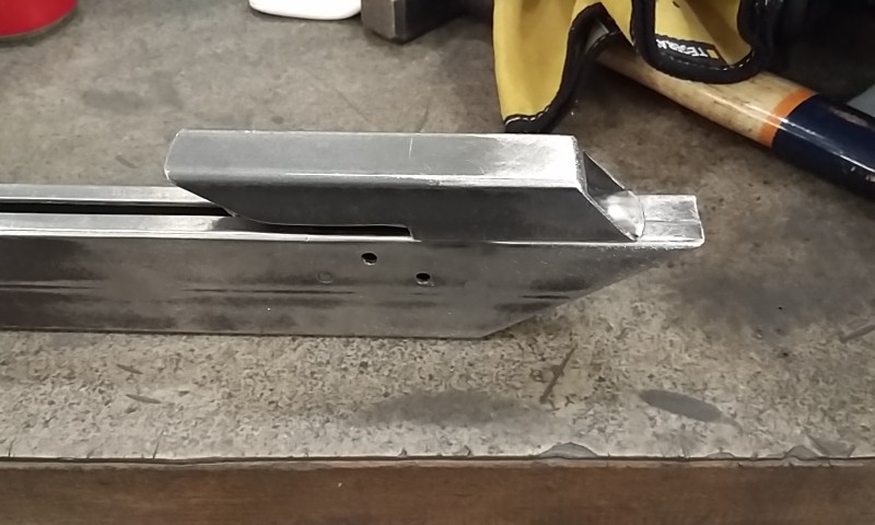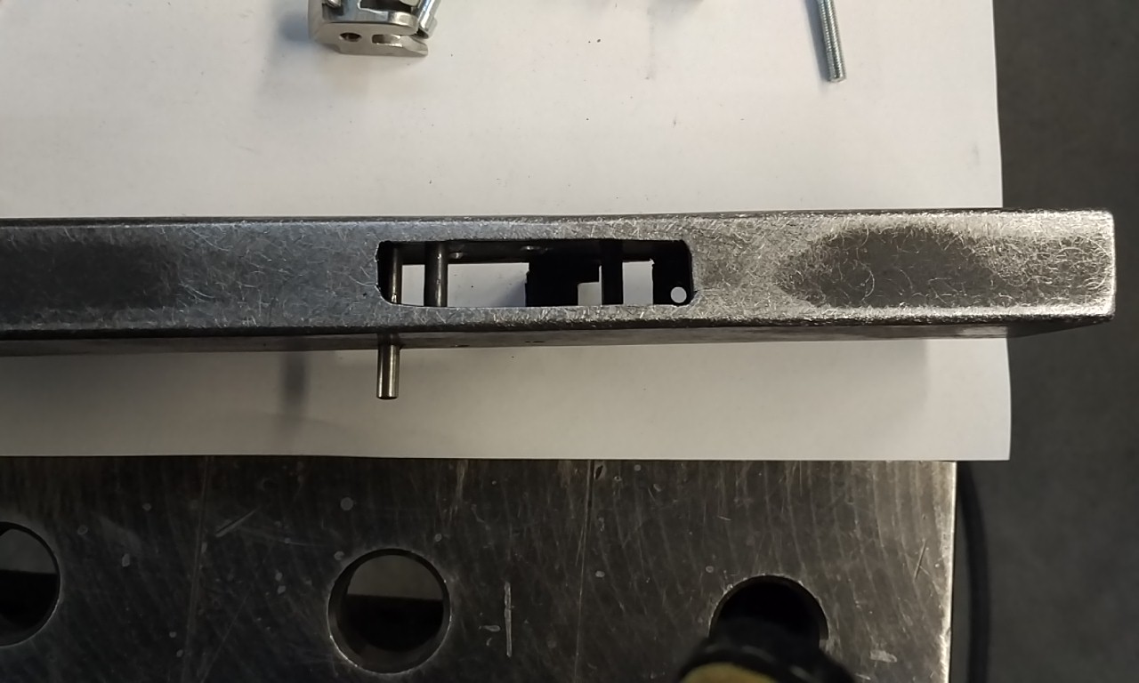 Jinak práce trochu pokročila. Doladění mechanismu. Pojistka je velice primitivní, ale funkční. Musel jsem trochu prodloužit konec jeklu. Přítlačné perko na šíp je zhotoveno ze stahovacich pasku, co se používá na přepravu palet s materiálem, pásky jsou pružné. Perko je na pevno svařené, nechtěl jsem, aby se třeba časem samovolně povoloval, je to pak opruz to furt štelovat. Šrouby použiju jiné, z plochou hlavou. Teď začnu shánět materiál na pažbu, rozhodl jsem se pro jasan, nebo máte lepší nápad? Budu rád za radu.