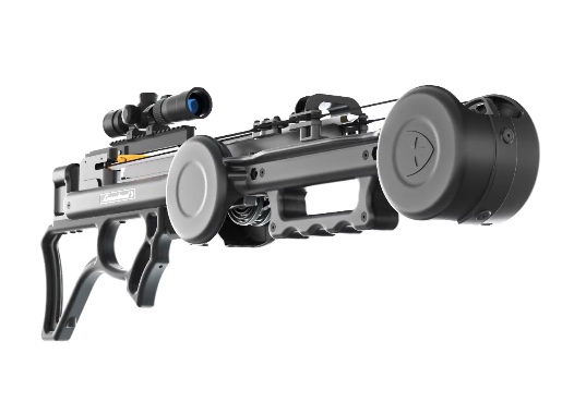 Jde o pár nadšenců, lovců a střelců z kuše, kteří v domácích podmínkách vyvinuli velice zajimavý koncept kuše. Trochu mi připomíná švýcarskou kuši bez ramen Marcela Burriho z 80.tých let, kde energii obstarávala dvojice tažných pružin po stranách railu. Zde rovněž neobstarávají energii výstřelu, jako u většiny současné produkce, různé variace pružných ramen, ale torzní pružiny (pera). Ty jsou umístěny po stranách railu vpředu a vzadu, otáčejí se proti sobě a přes systém kladek tak spolupracují a urychlují šíp. Díky tomuto systému je kuše velice úzká (3,9”!) a v tomto směru nemá konkurenci. Nátahová síla činí 170 lb, délka nátahu bezkonkurenčně dlouhých 24”. K napinání slouží externí kličkový mechanismus.