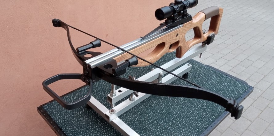 . Přikládám foto. Chtěl jsem si vyrobit vlastní kuši a vyzkoušet jak to dopadne. Byl to samozřejmě pokus-omyl, hlavně spoušťový mechanismus. Nejsem sebevrah a když jsem poprvé natáhl lučiště věděl jsem, že to není žádná sranda. Kromě lučiště a puškohledu