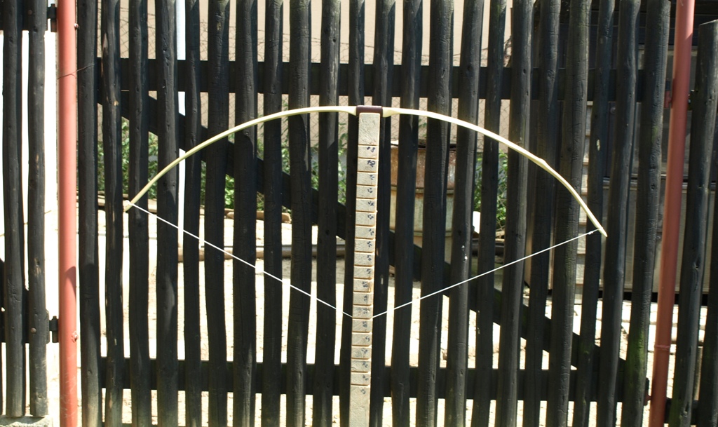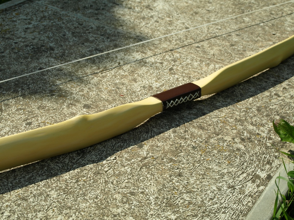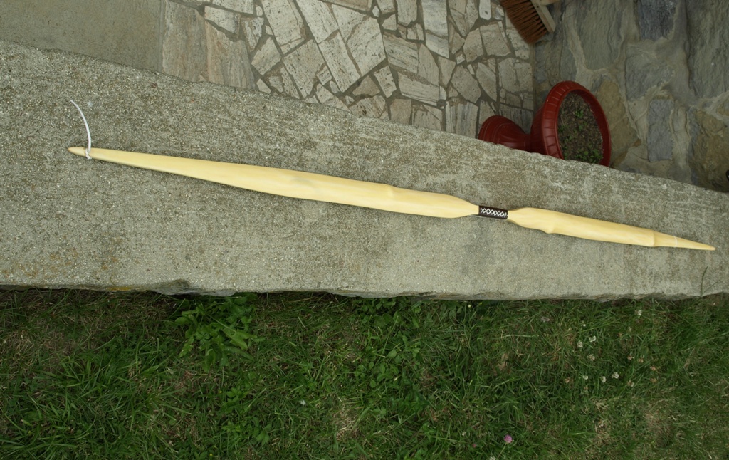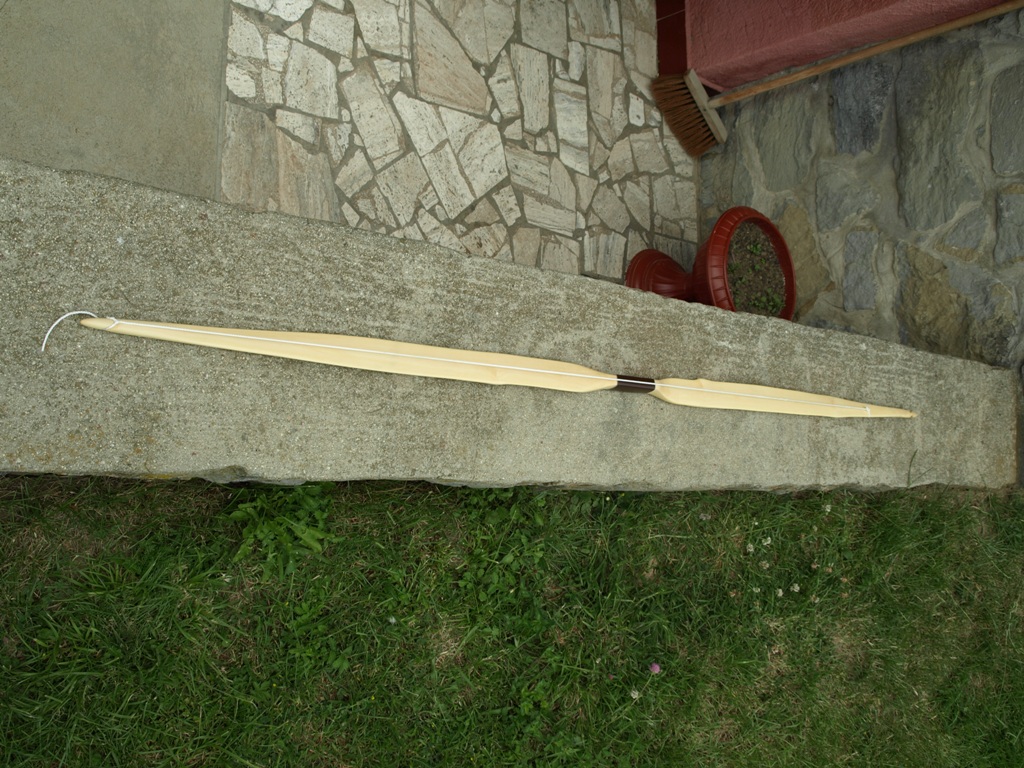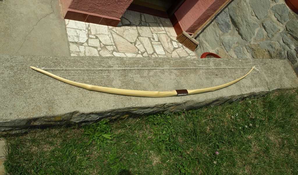 Luk z reflexného pokrúteného kmeňa bazy, drevo sušené 1/2 roka, tiller nie je dokonalý, drevo malo množstvo veľkých hrčí a tuhých miest. Luk vzhľadom na charakter dreva vyšiel len na 35lb ale strieľa čisto a presne.