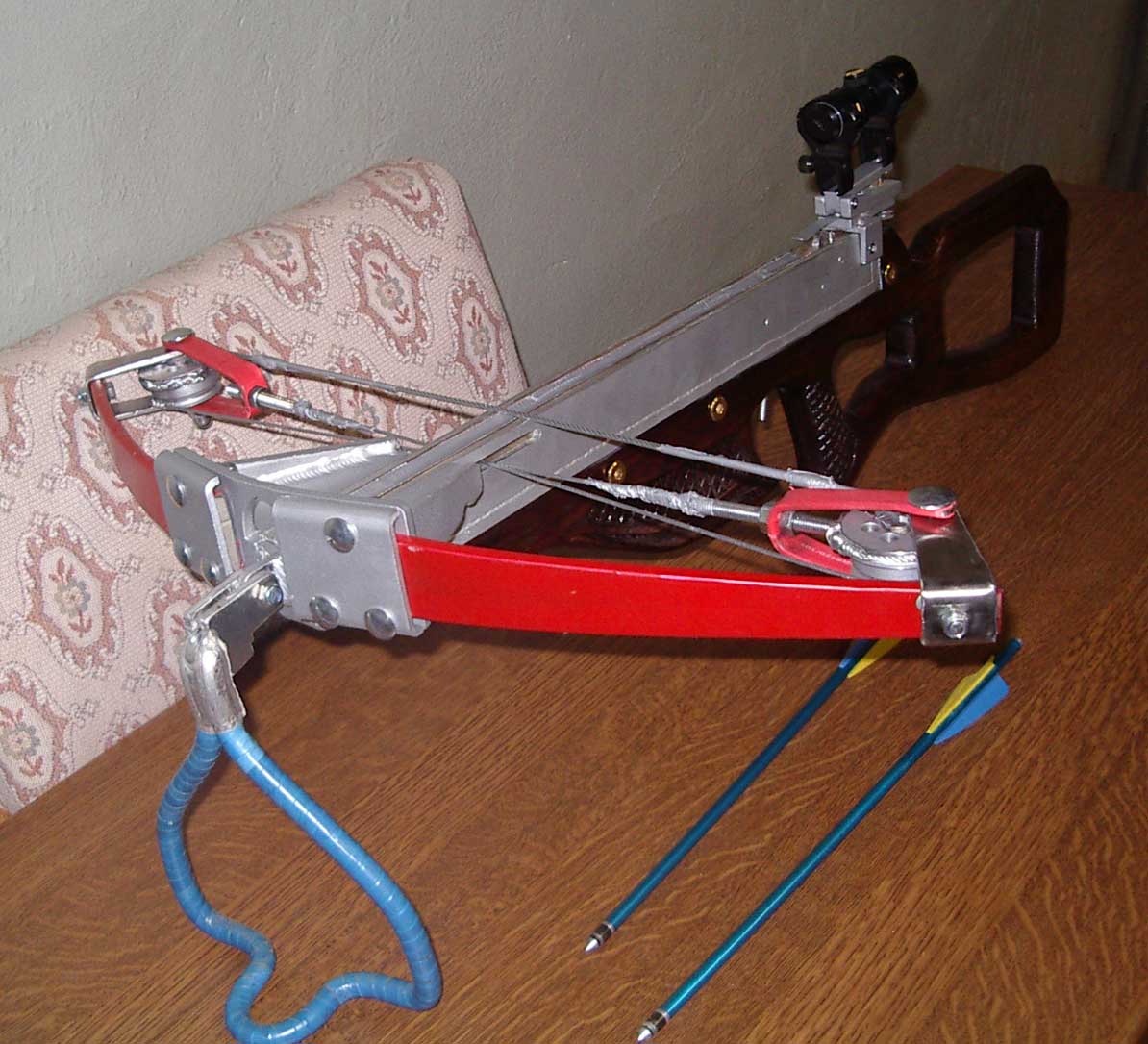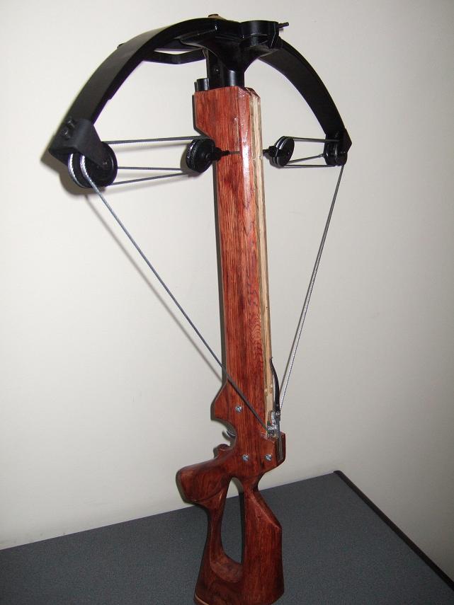 Z kuše zbyla pouze přední část s rameny. Pažba je vlastní, dřevěná. Jako základ spoušťového mechanismu zvolil návrh uvedený v knize Y.V. Shokareva „Historie zbraní luků a kuší“.