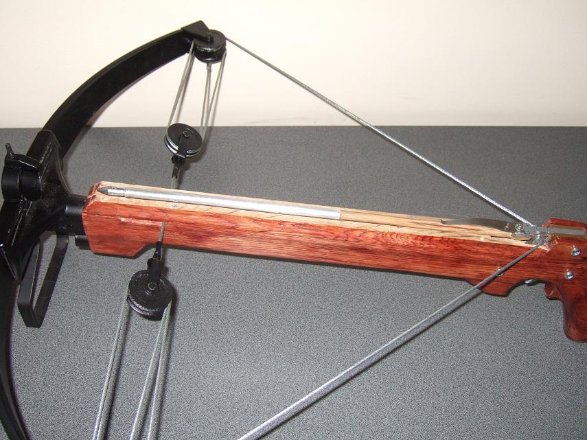 Na této stavbě je vidět, že kuše je kompletní stavbou včetně ramen a kladkového systému.