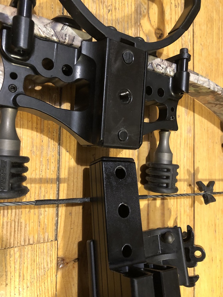 1. Ok, přidávám foto, je to de facto stejné jako u tvé kuše. Druhá a třetí fotka jsou s riserem posunutým na jednu a na druhou stranu.