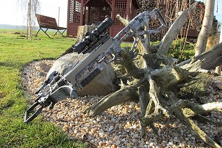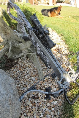 Kuše je osazena vším, co tlumí výstřel, optika je Tact Zone. Malinko mi připadá, že zvětšuje méně, než Dead Zone, ale má jemnější kříž a lépe se s zaměřuje, domečky nepřekrývají cíl. Dojem malinko kazí nálepka na spodku optiky made in china, ale což-tu jsem sundal. Vzdálenost optiky od oka jsem musel nastavit malinko jinak, než u Matrixe, pažby jsou stejně dlouhé, tak nějak přemýšlím proč, asi to opravdu bude zvětšením.