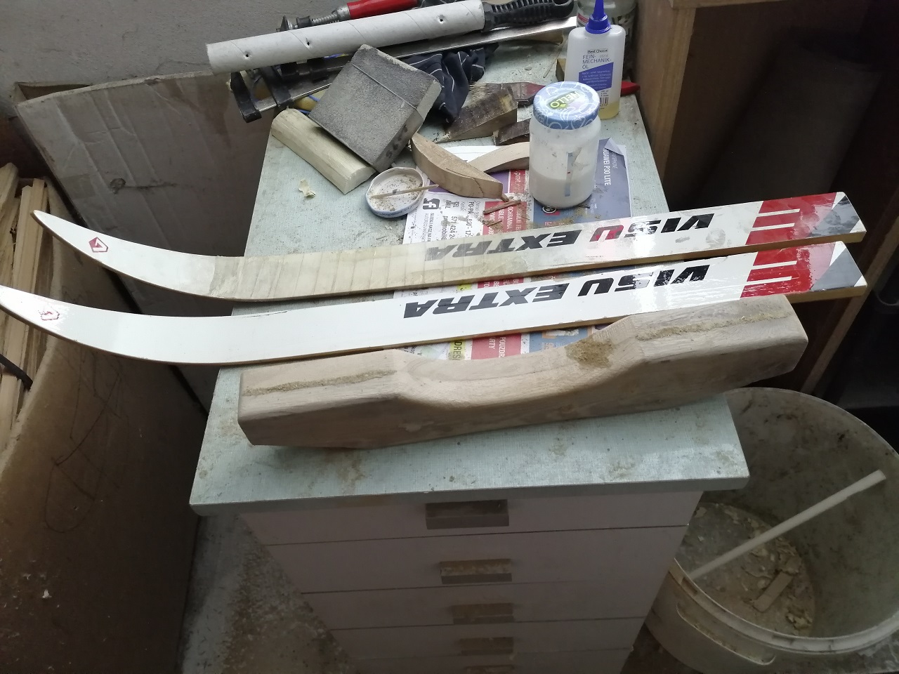 Nazdar, lidičky. Pro pobavení dávám pár obrázků z výroby deflexně-reflexního luku ze starých běžek z CCCP. A taky jako důkaz, že střílející luk z dřevěných běžek opravdu lze udělat. Je zajímavé, že jedna lyže už byla asi před 20 lety nalomená, pak spravená laminací a po odřezání se v luku zatím drží a nepraská. Kromě tětivy, kterou jsem koupil, je to udělané z toho, co poskytla garáž. Oproti fotkám jsou dneska na koncích ramen ještě dobové končíky, tak to budí trochu mocnější dojem. Síla kolem 25 liber. Délka tětivy je stejná jako pro 68" reflexní luk. Ale pozor! Po zhodnocení výsledku dojdete k tomu, že je jednoznačně lepší si koupit bazarový značkový komerční luk. Proč? Protože bez práce a doslova za pár stovek za bazarovku máte něco, co střílí o poznání rychleji. Takže jde to udělat, ale vezměte si to jako příklad nevhodný k následování :-)