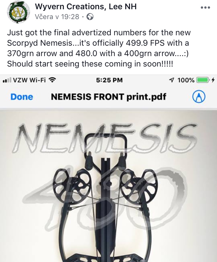 Prodejce kuší a loveckého vybavení Wyvern Creation změřil rychlost nového Scorpydu Nemesis 480.