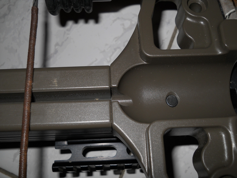 Bulldog 380 má v hlavě 2 výstupky, které zapadnou do railu. Vše se pokaždé zafixuje ve stejné stabilizované poloze. Šroub toto zafixování jenom pojistí a zajistí. Bez těchto výstupků to nemůže pořádně nikdy držet. Tato kuše má velké nátahové síly a bez pevné fikace je to špatné. Ještě jednou prosím doložit foto.