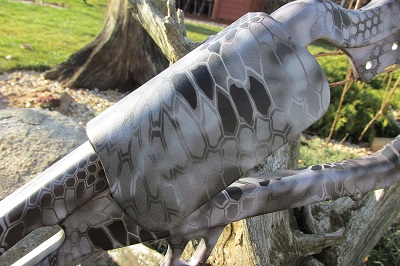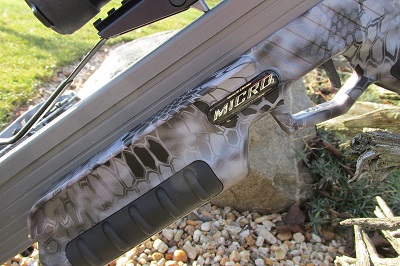 Takže jsem se rozhodnul pro něco alespoň malinko jiného než mám a pořídil Micro 335 Raid Kryptek. Ta nová kamufláž na fotkách vypadá jako modrá, připomíná hadí šupiny, ve skutečnosti je spíše šedá a mě připomíná suché květy. V pozadí spadaného listnatého lesa nebo suché trávy je téměř neviditelná. Technika nanášení této barvy asi bude jiná, než tomu bylo u klasického listí ( Mossy Oak ) barvy přechází z ostré až do rozmazaných odstínů.