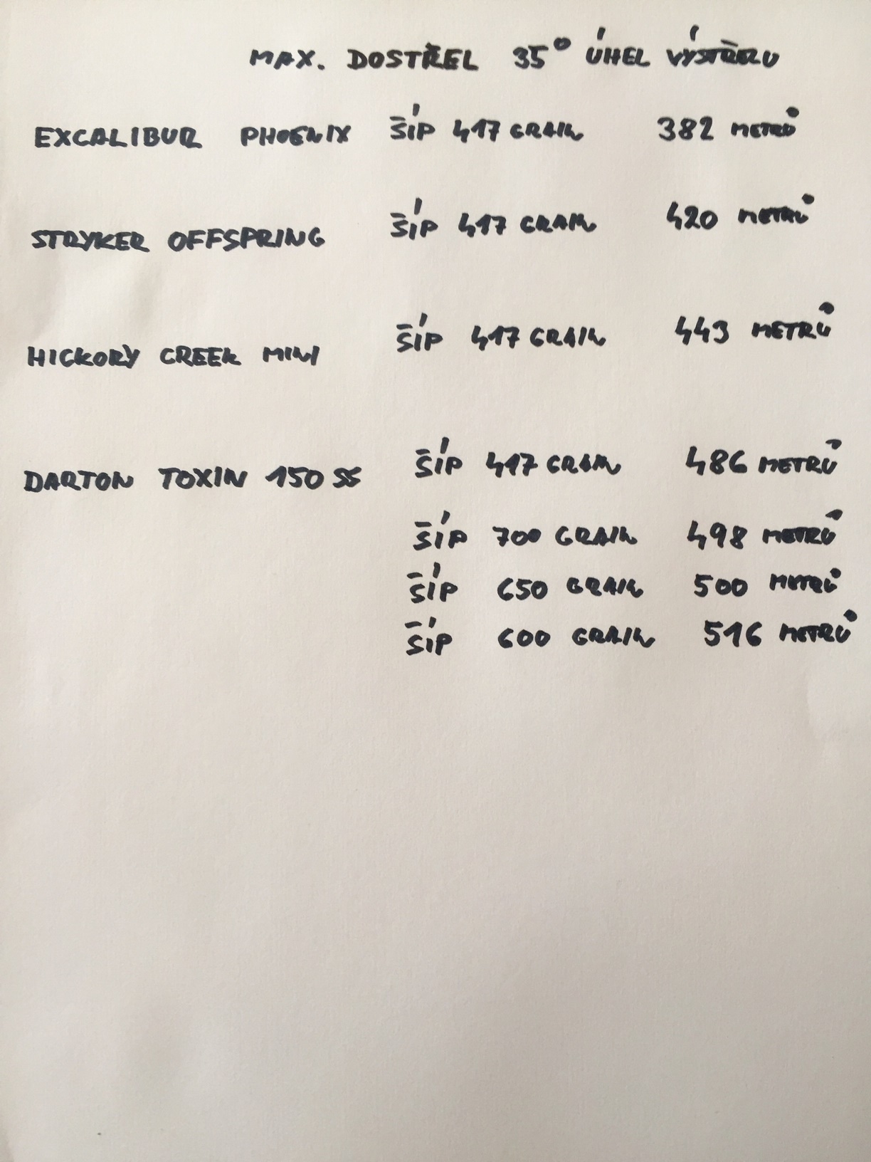 A jak je vidět z tabulky, dostřel byl ještě větší. Je tedy vidět, že kuše má velký výkonový potenciál a nejvyšší účinnost s šípy kolem 600 - 700 grainu. Teprve potom začne energie klesat.