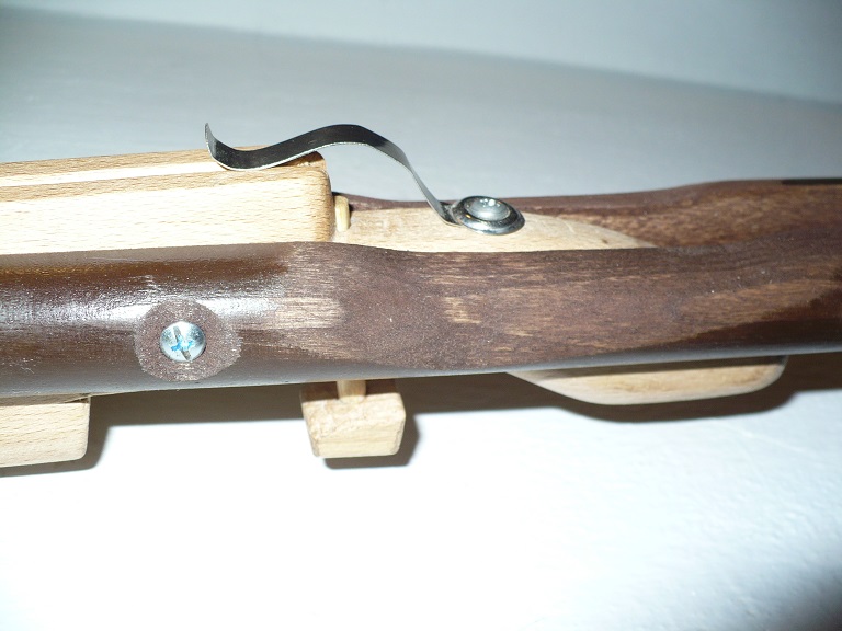 A ta pažba je chycená 2 šrouby, dá se lehce demontovat a je z toho zase pistolovka. Nápad s natahováním pomocí naklápění té pažby přes 1 šroub jsem nerealizoval.