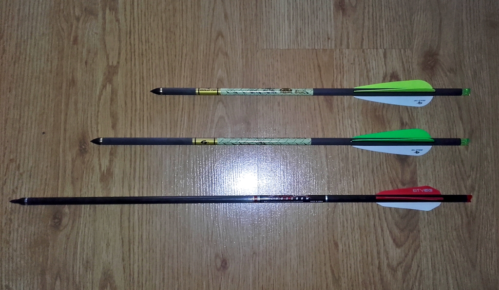 Velmi dobré zkušenosti mám s Gold Tip Ballistic 425 (16" 350 gr. z toho 100 gr hrot). Krásně zpracované, mosazný inzert, pěkný povrch, krásný končík. Přesnost asi stejná (nejsem schopen poznat rozdíl) jen jsou křehčí. Pokud trefíš něco tvrdého, jsou zničené.