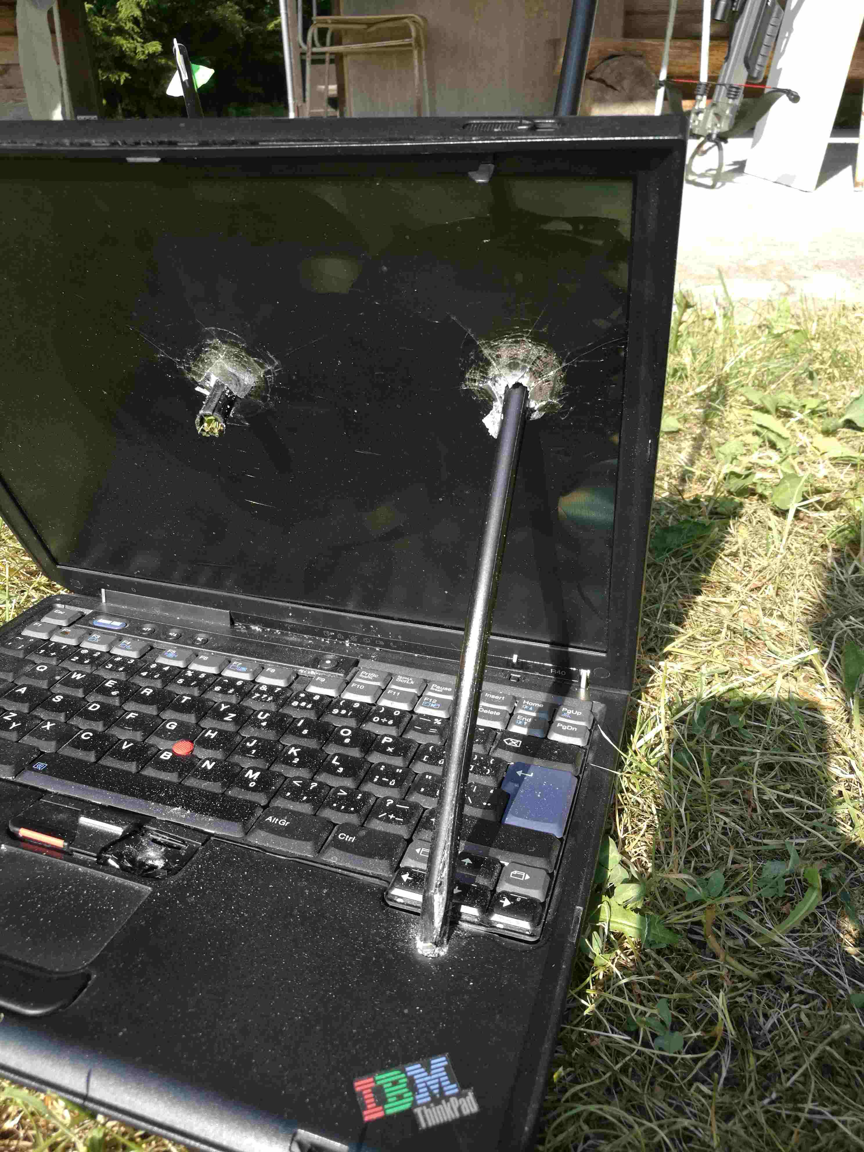 Taky jsme zkoušeli prostřelit nefunkční notebook, propříště nejdřív vyndáme baterky...