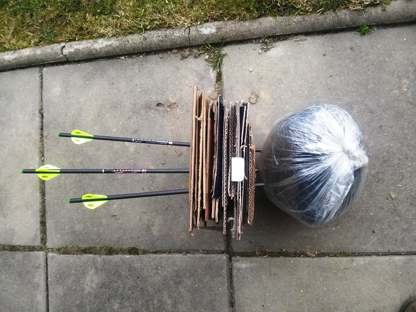 Slíbené foto. Střílené s Excalibur Matrix380 na asi 10-15 metrů. Vlevo obyčejný terčák (ale 145 grainů) uprotřed Toxic a vpravo tříbřitý svařovaný laserem (oba 100 grainů). Váha šípu s terčákem asi 435 grainů a s loveckýma asi 390 - ale to už bych kecal. Je to jen matná vzpomínka a nemožu to už ověřit.