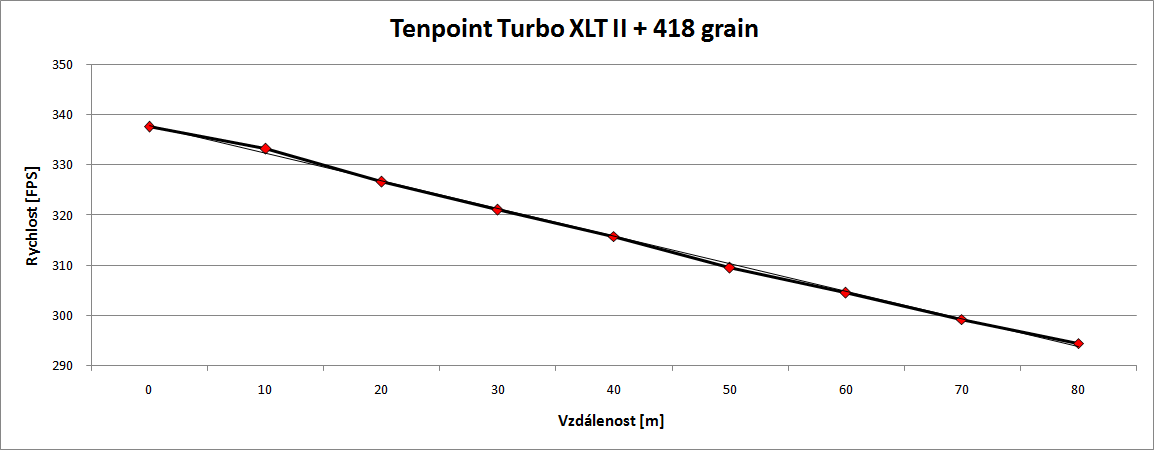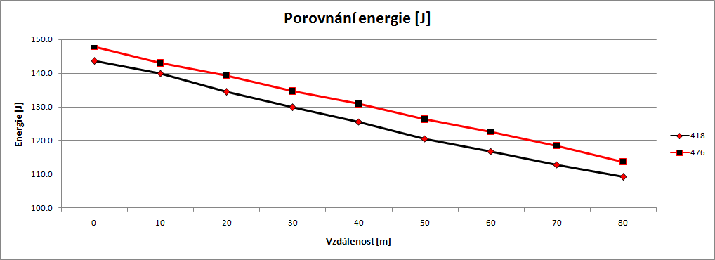 Zajímavé by bylo vyzkoušet takové sady i na jiných typech kuší a pak srovnat ve velkém grafu proti sobě. U některých kuší (zejména u starších typů) by ale graf končil dříve, dejme tomu na 50 - 60 metrech, vhledem k jejich výkonu. Tvůj Ten Point Turbo XLT II je výkonově vysoko, ty energie jsou obrovské. Zajímavé by bylo zkusit ještě těžší šíp, dejme tomu 530 gr. Dle mého bys byl schopen se dostat přes 150 joule.