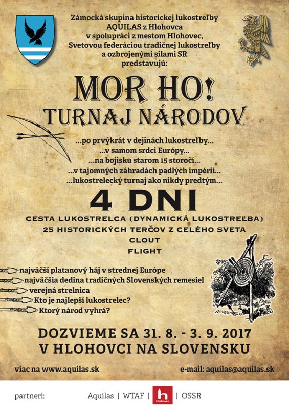 partneri: Svetová federácia tradičnej lukostreľby, mesto Hlohovec, Ministerstvo obrany SR, Hotel Jeleň